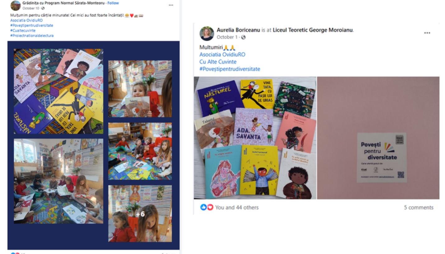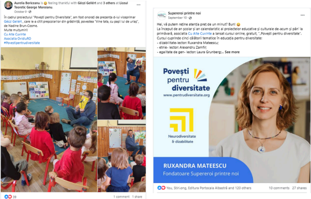 „Povești pentru diversitate“ este un curs video comprehensiv pentru formarea profesorilor din învățământul preșcolar și primar în educația pentru diversitate. Acesta abordează cinci teme relevante pentru diversitatea copiilor din grădinițele și școlile românești: dizabilități, statut socio-economic, etnia romă, egalitate de gen și familie, fiecare cu un specialist invitat. În prima lună de la lansarea cursului s-au înscris 3610 cursanți, dintre care 1683 au finalizat cursul cu succes. Cursul integrează 35 de ghiduri pedagogice digitale, iar primii 500 de profesori care au finalizat cursul cu succes au primit fizic câte un pachet educațional ( 9 cărți ilustrate și 2 jucării).