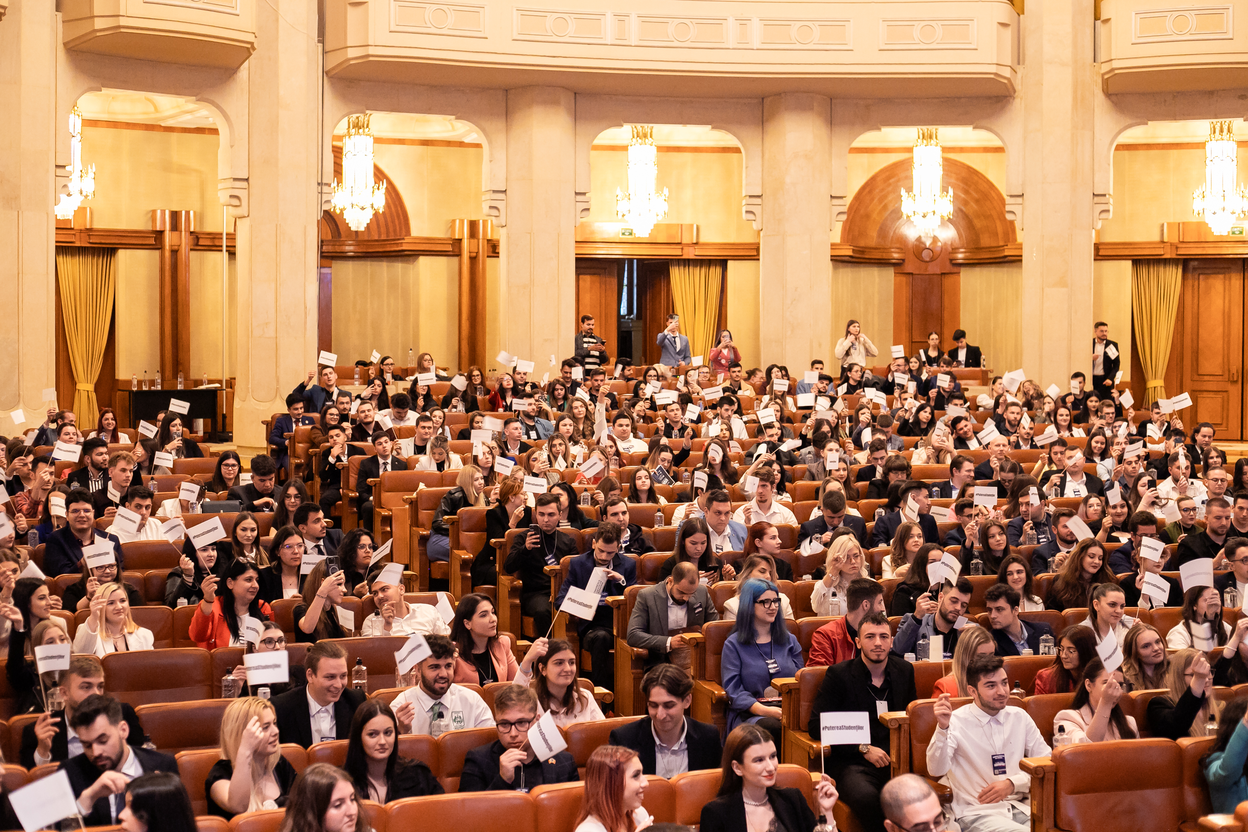 4. Evenimentul principal din mai 2024: peste 700 de studenți au participat la sesiunea plenară, având posibilitatea de a dezbate cu decidenții probleme și soluții identificate în cadrul grupurilor de lucru și integrate în rezoluție. Alături au fost prezenți decidenți de seamă precum Nicu Ștefănuță (Europarlamentar), Natalia-Elena Intotero (Ministrul Familiei, Tineretului și Egalității de Șanse) sau Mircea Geoană, contribuind activ la discuțiile întreprinse