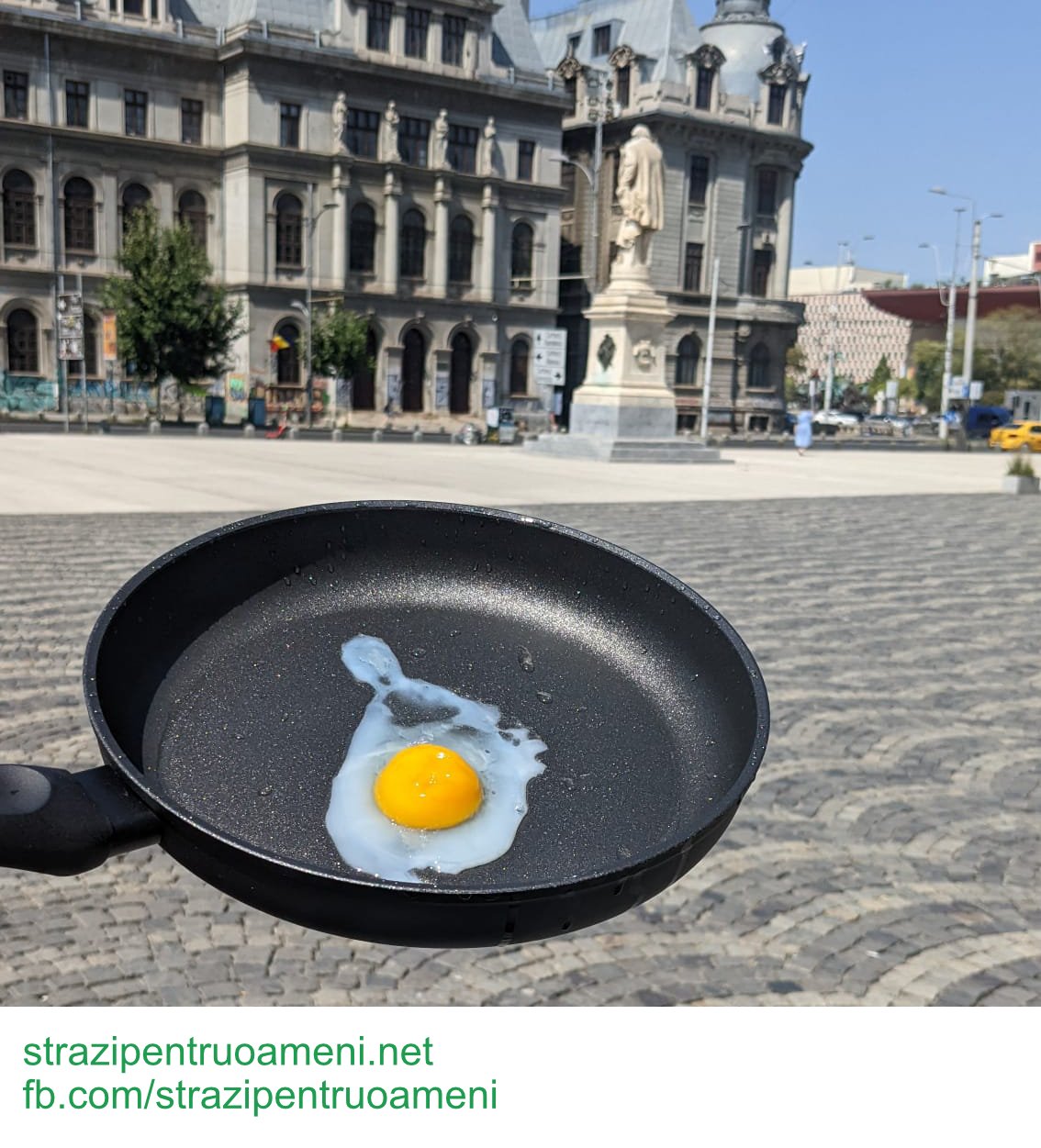 Echipa ONG-ului a reușit ca experiment să prăjească un ou la soare în Piața Universității în vara anului 2022.