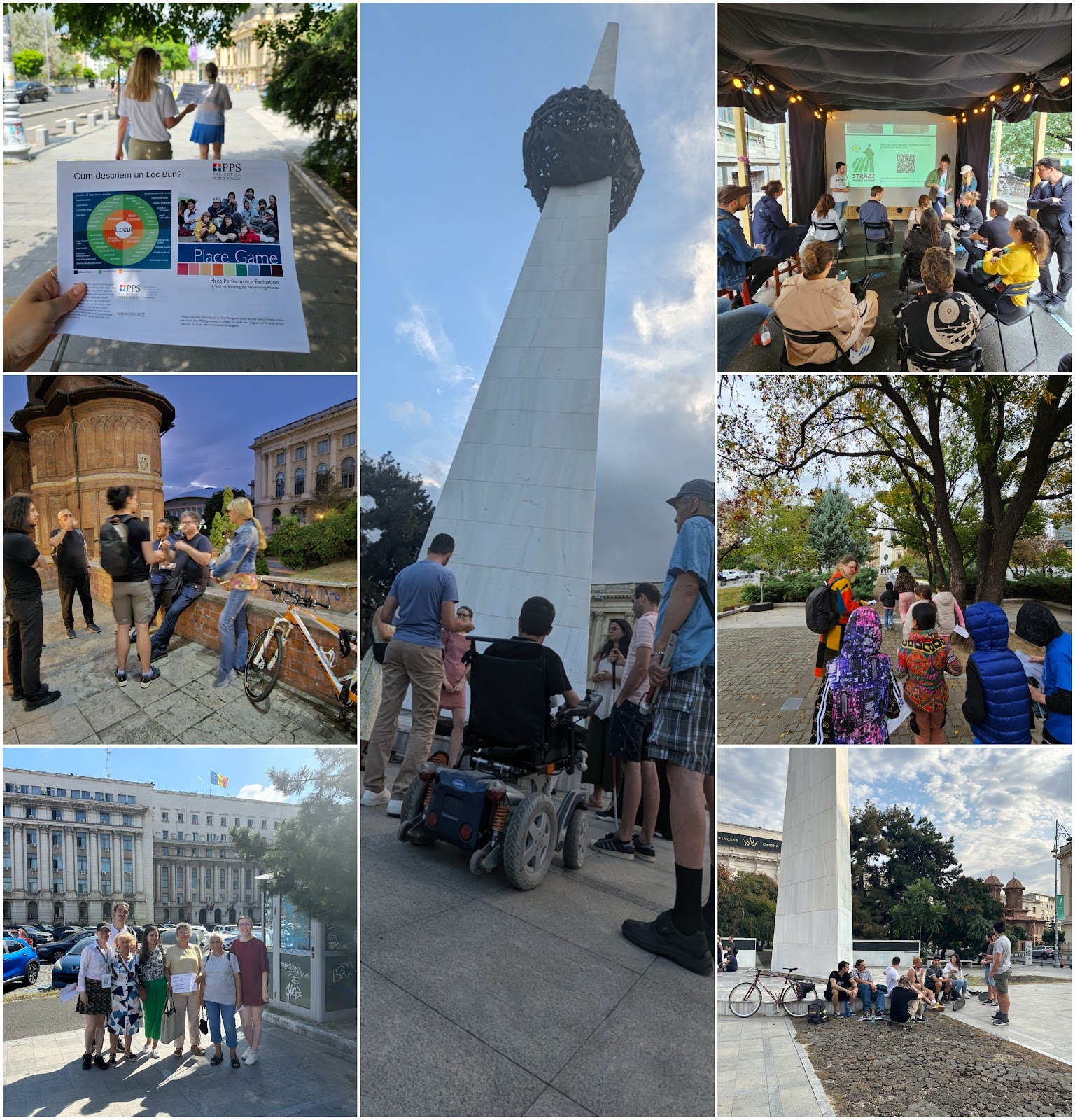 Echipa noastră a aplicat metodologia The Place Game în Piața Revoluției pe parcursul iulie - octombrie 2024, implicând 71 de bucureșteni în consultări - beneficiarii direcți ai proiectului. Participanții au inclus membri diverși ai comunității: seniori (3 persoane), copii (10), adolescenți (10), skateri (7), riverani (3), revoluționari sau rude ale unor victime ale Revoluției din 1989 (9), angajați din zonă din mediul public sau privat (3), persoane cu dizabilități (5), participanți ArchyFest (15) și ghizi turistici (7).